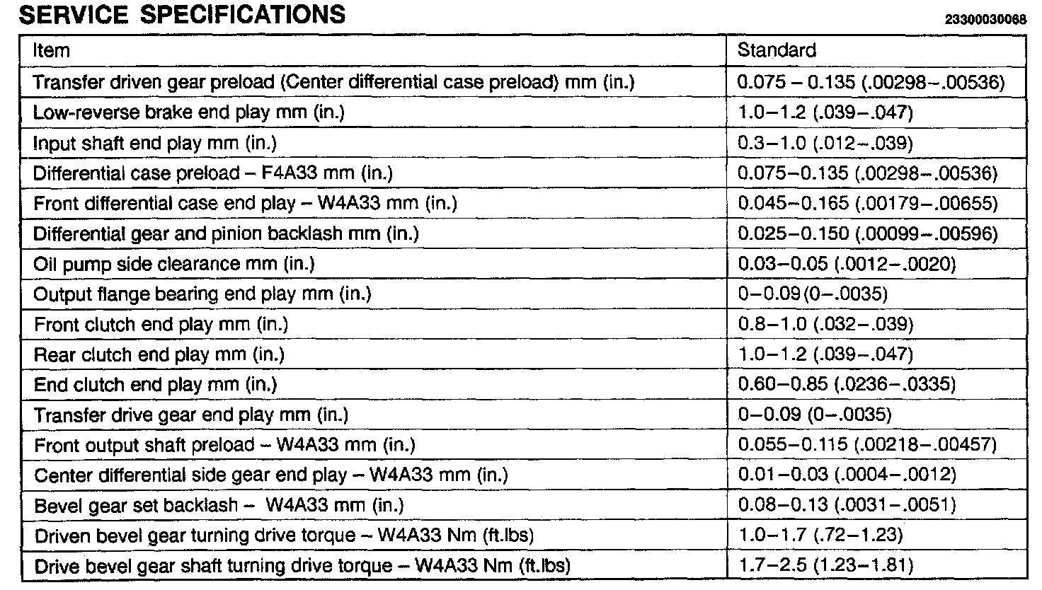 F4A33/W4A33 4-spd A/T, Standard Values: