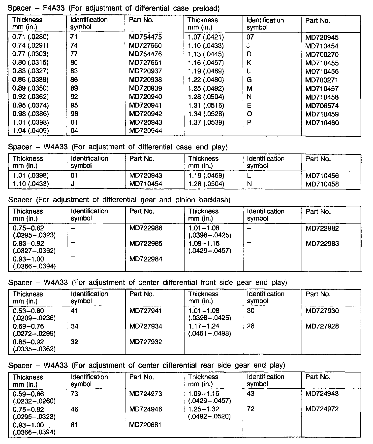 F4A33/W4A33 4-spd A/T, Differential Preload, End Play & Backlash: