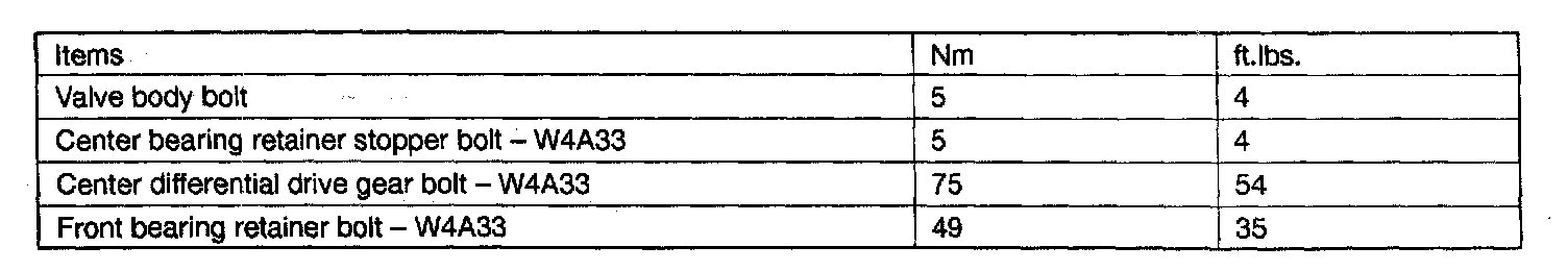 F4A33/W4A33 4-spd A/T, Transaxle Torque:
