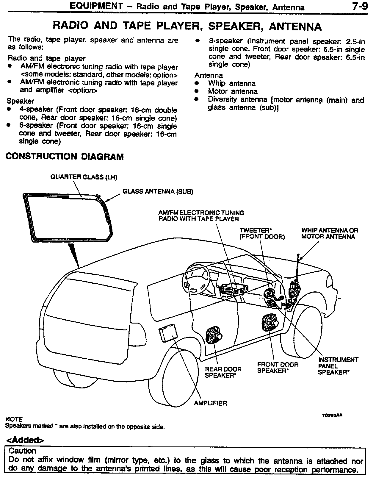 1997 Montero Sport Technical Information Manual, Page 7-9 Add the new glass antenna caution as shown.