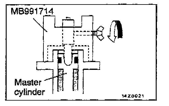 (2) Make sure that the shaft of the special tool makes a light contact with the master cylinder piston.