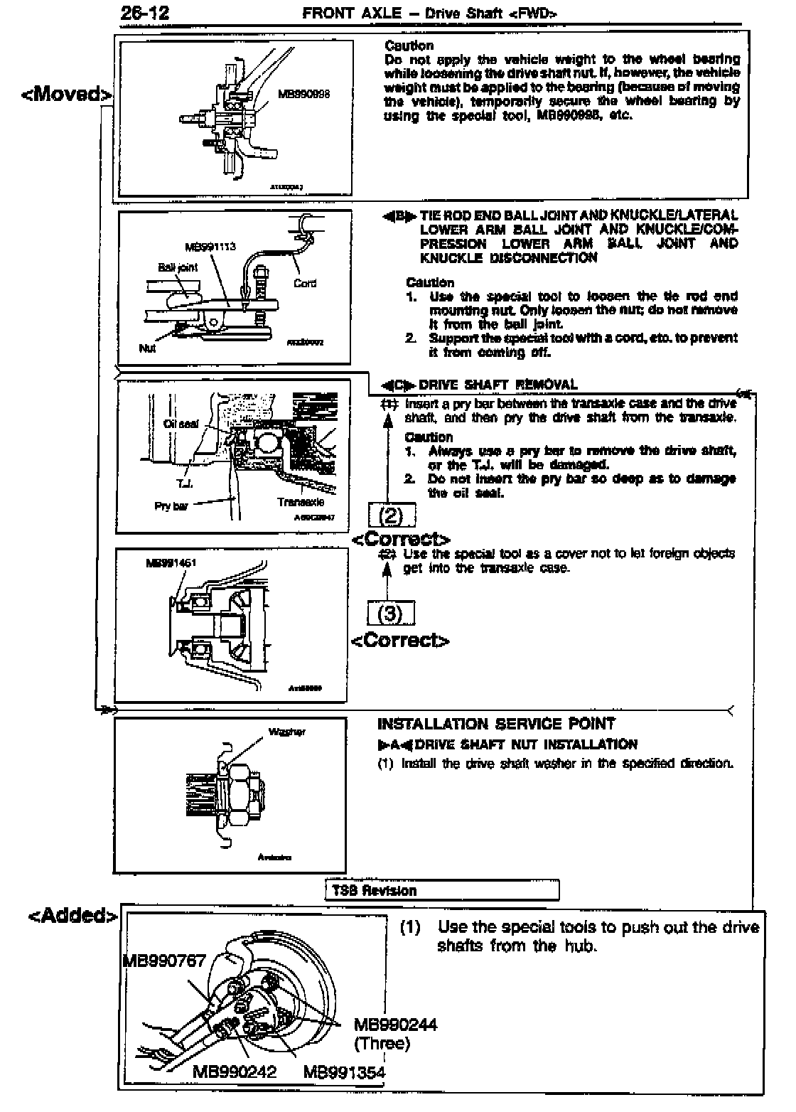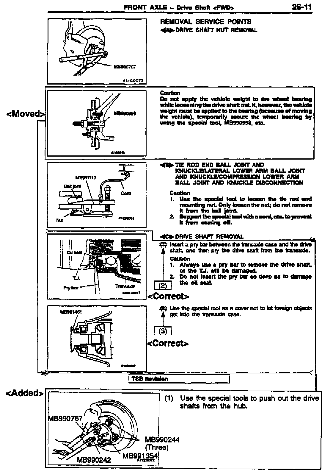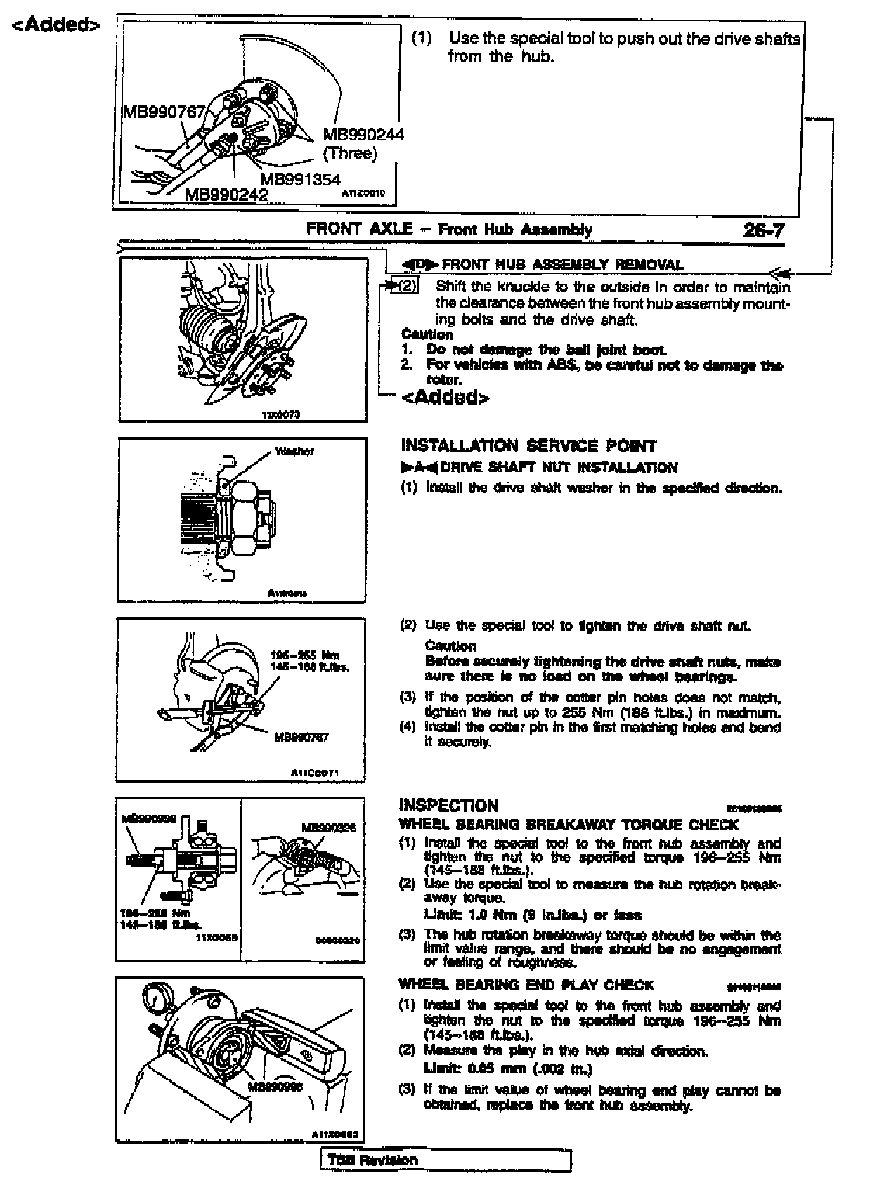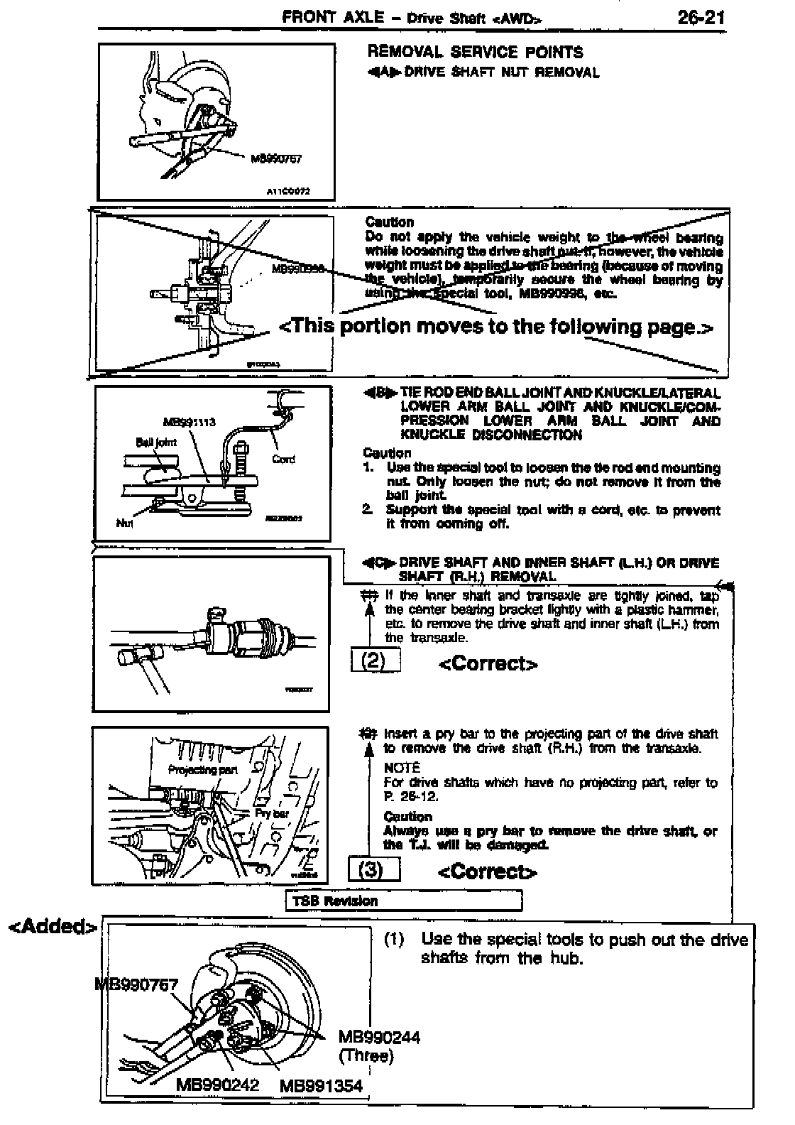 DRIVE SHAFT (FRONT AXLE) REMOVAL PROCEDURES - SERVICE MANUAL REVISION