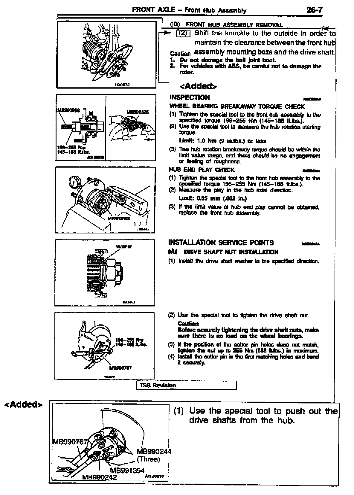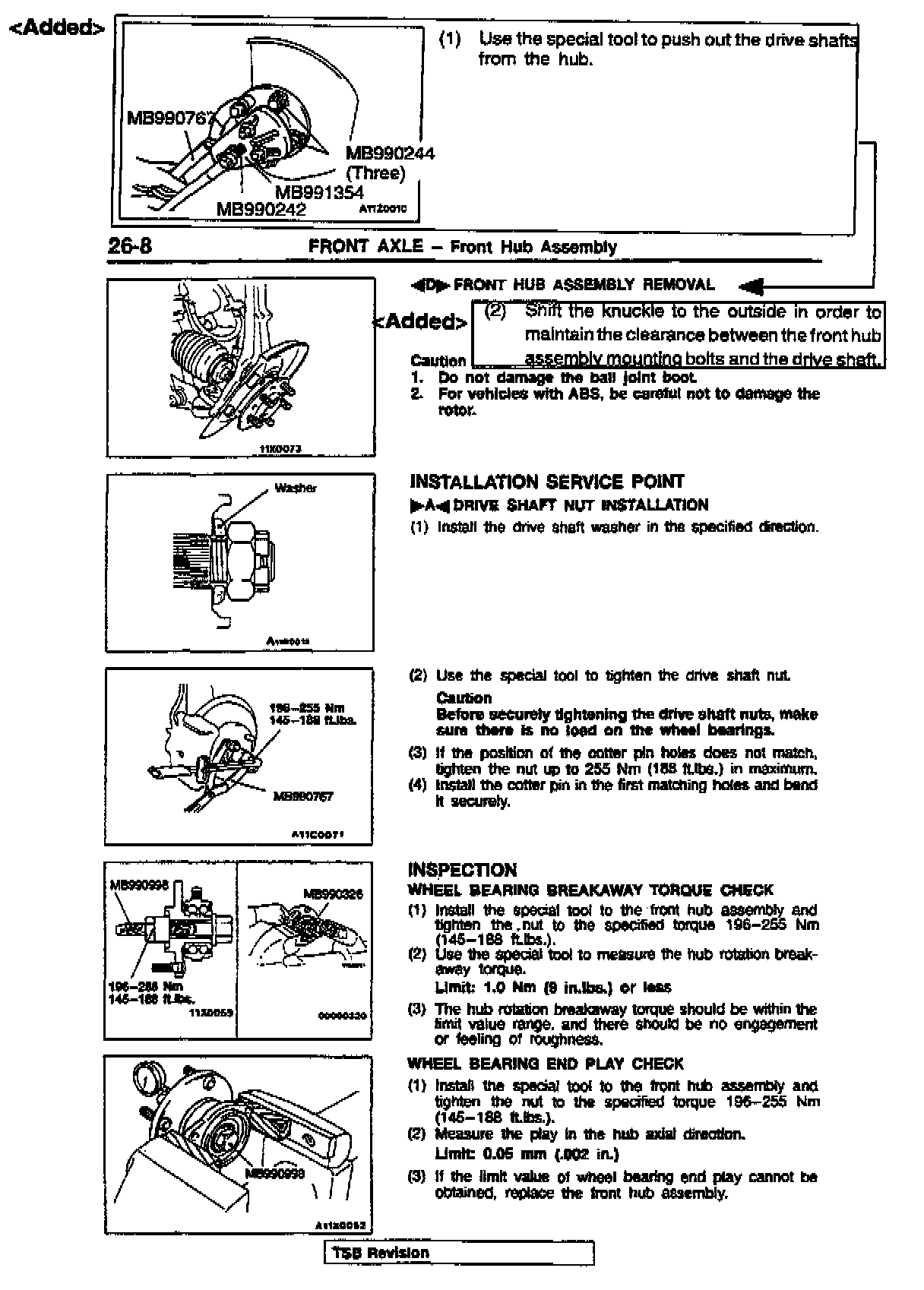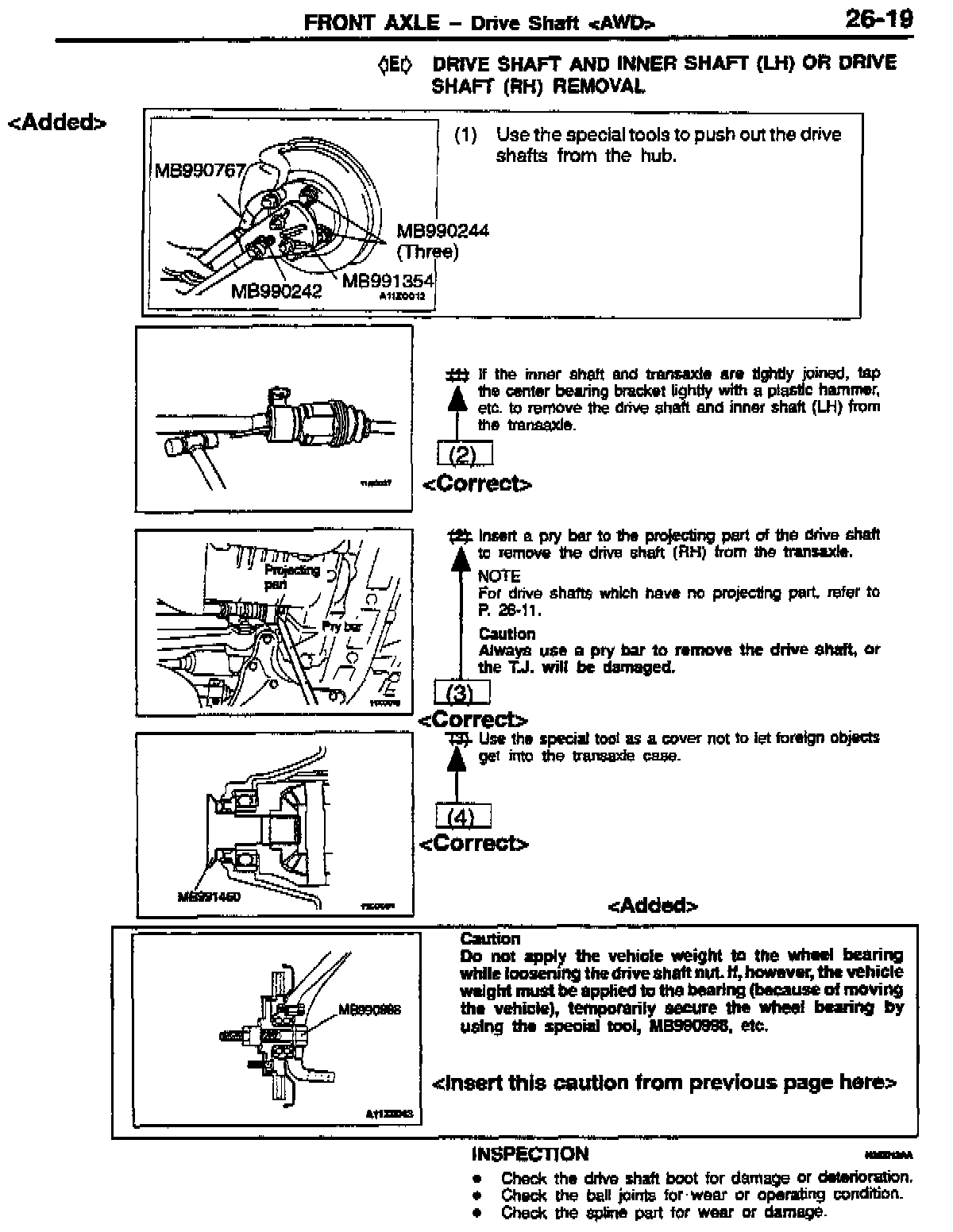 DRIVE SHAFT (FRONT AXLE) REMOVAL PROCEDURES - SERVICE MANUAL REVISION