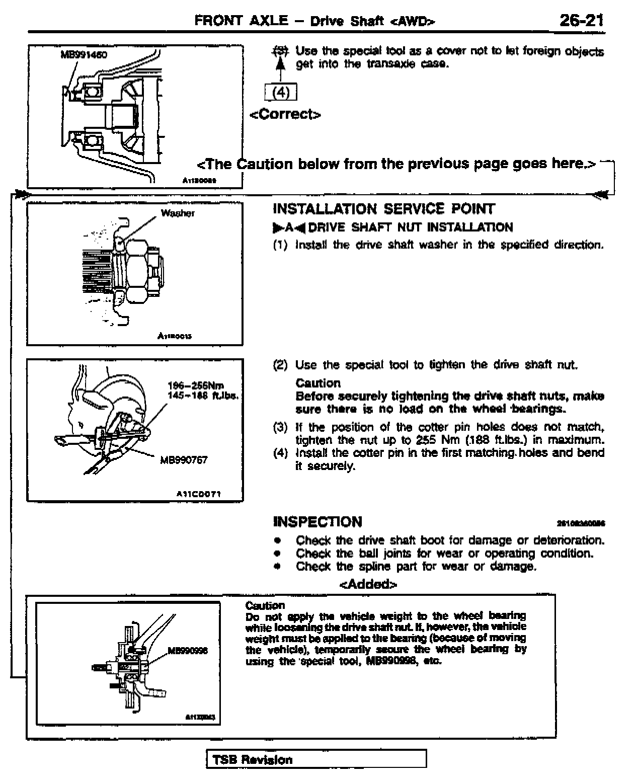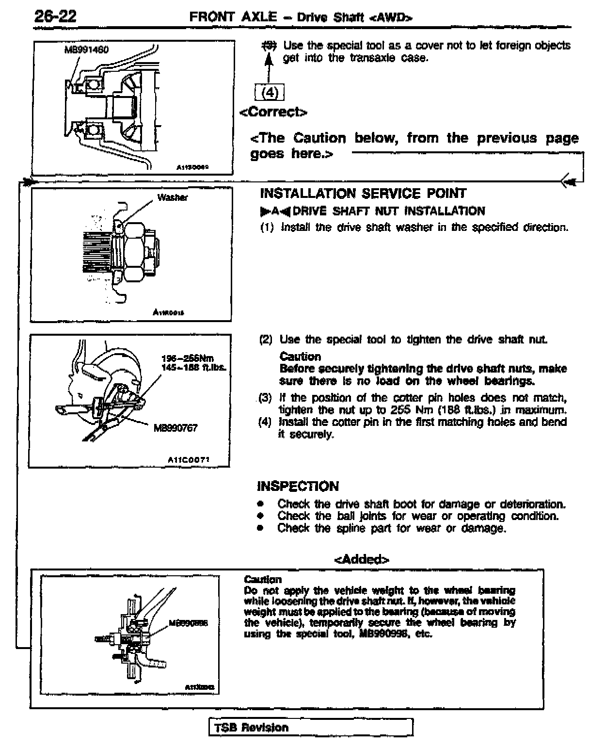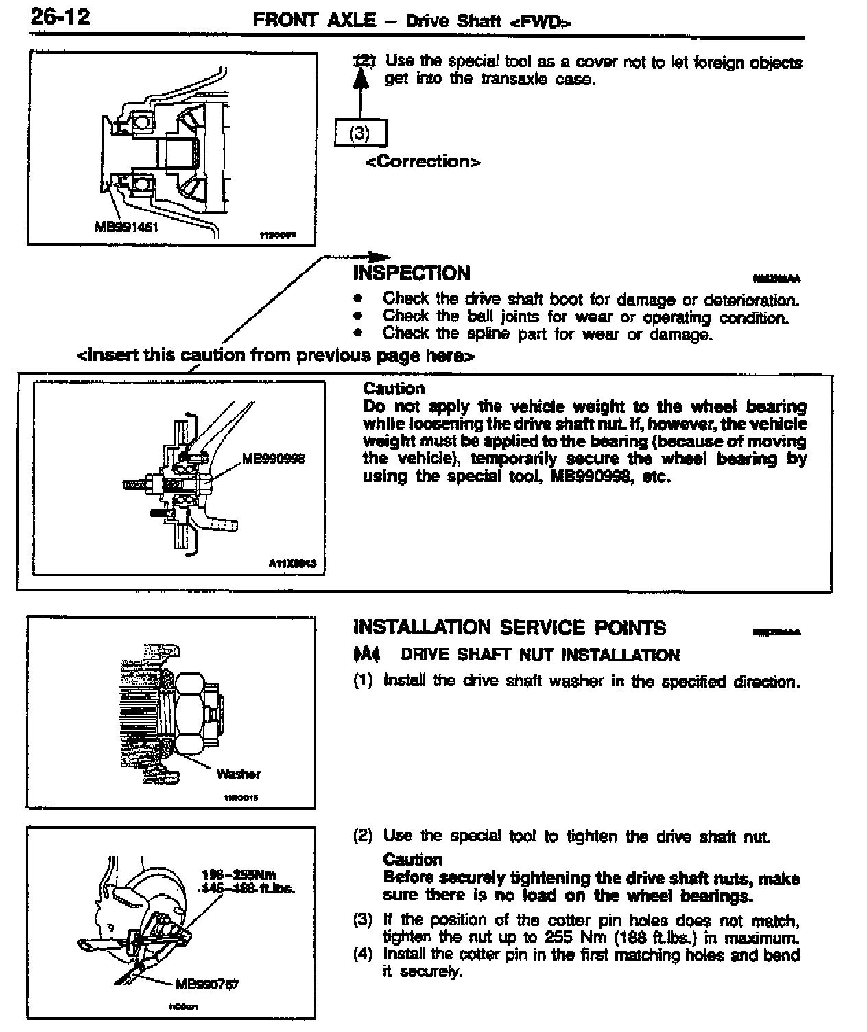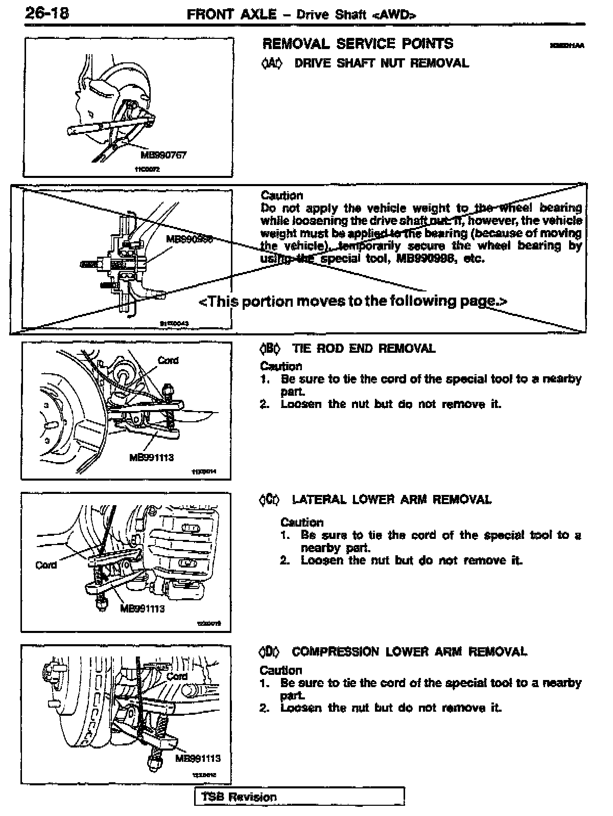 DRIVE SHAFT (FRONT AXLE) REMOVAL PROCEDURES - SERVICE MANUAL REVISION