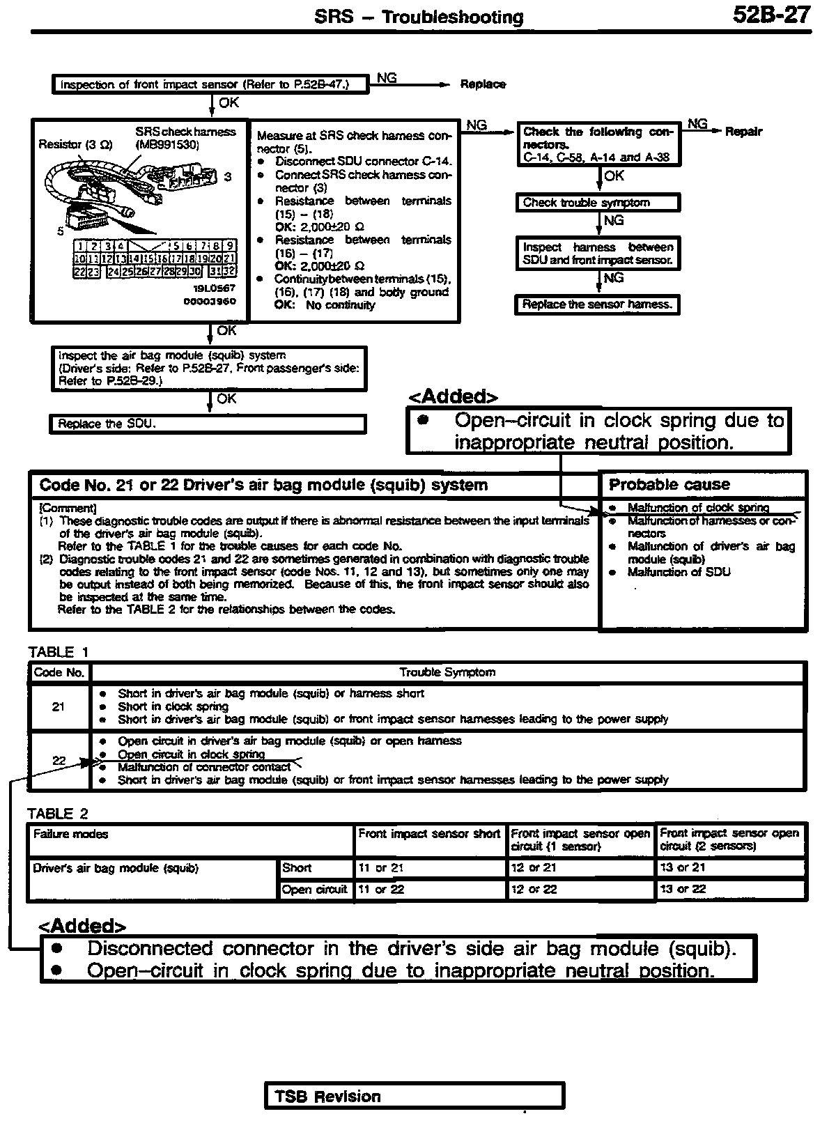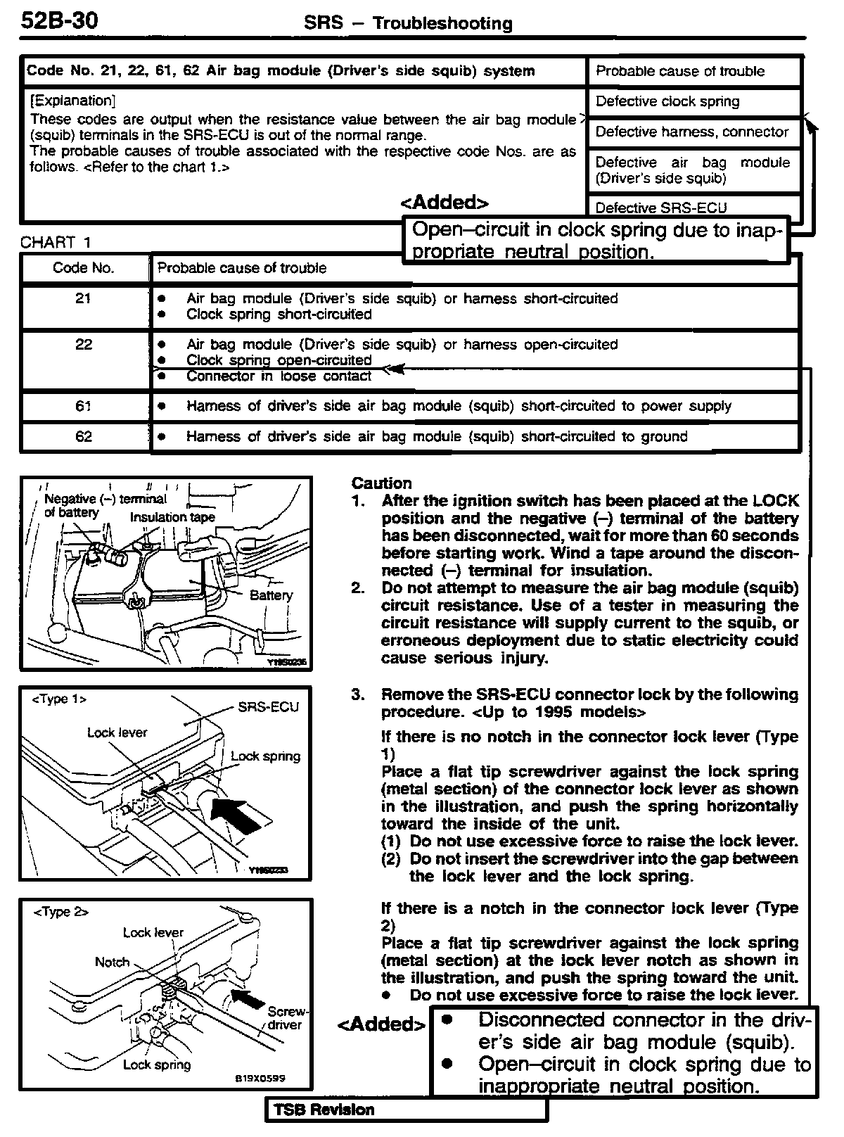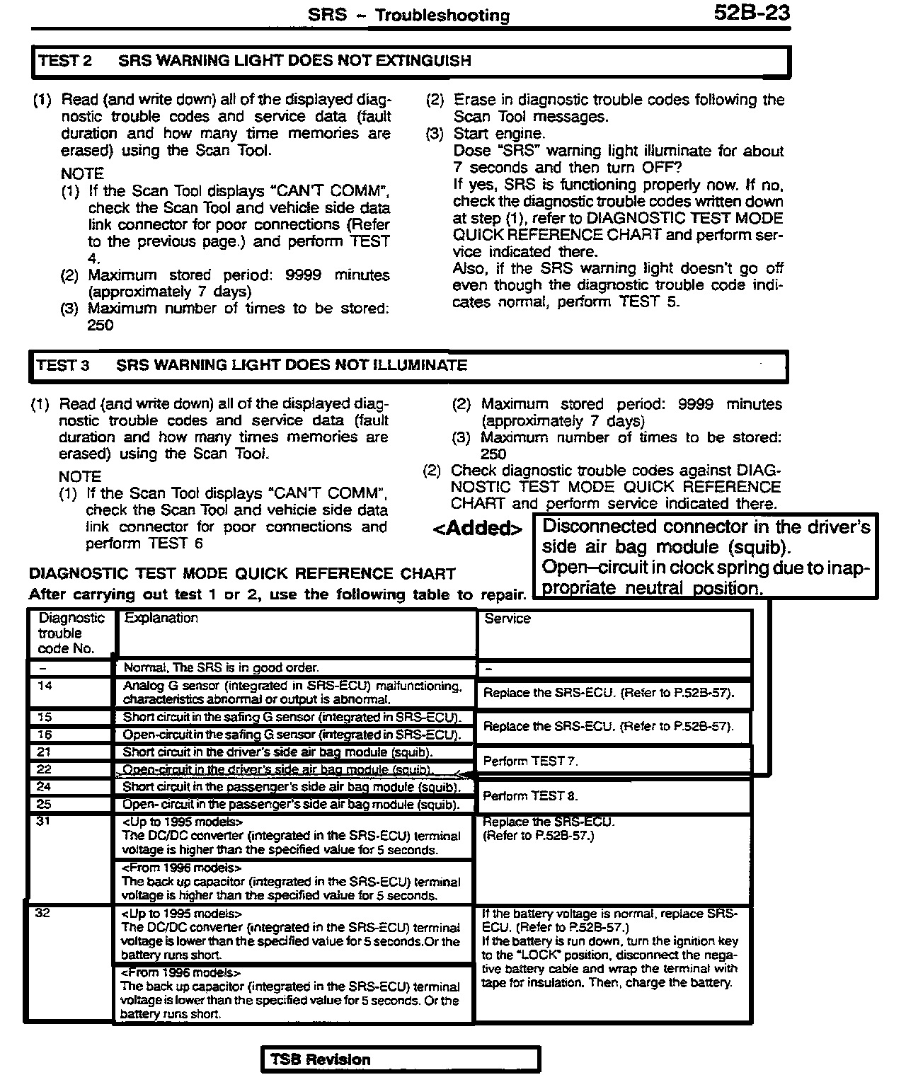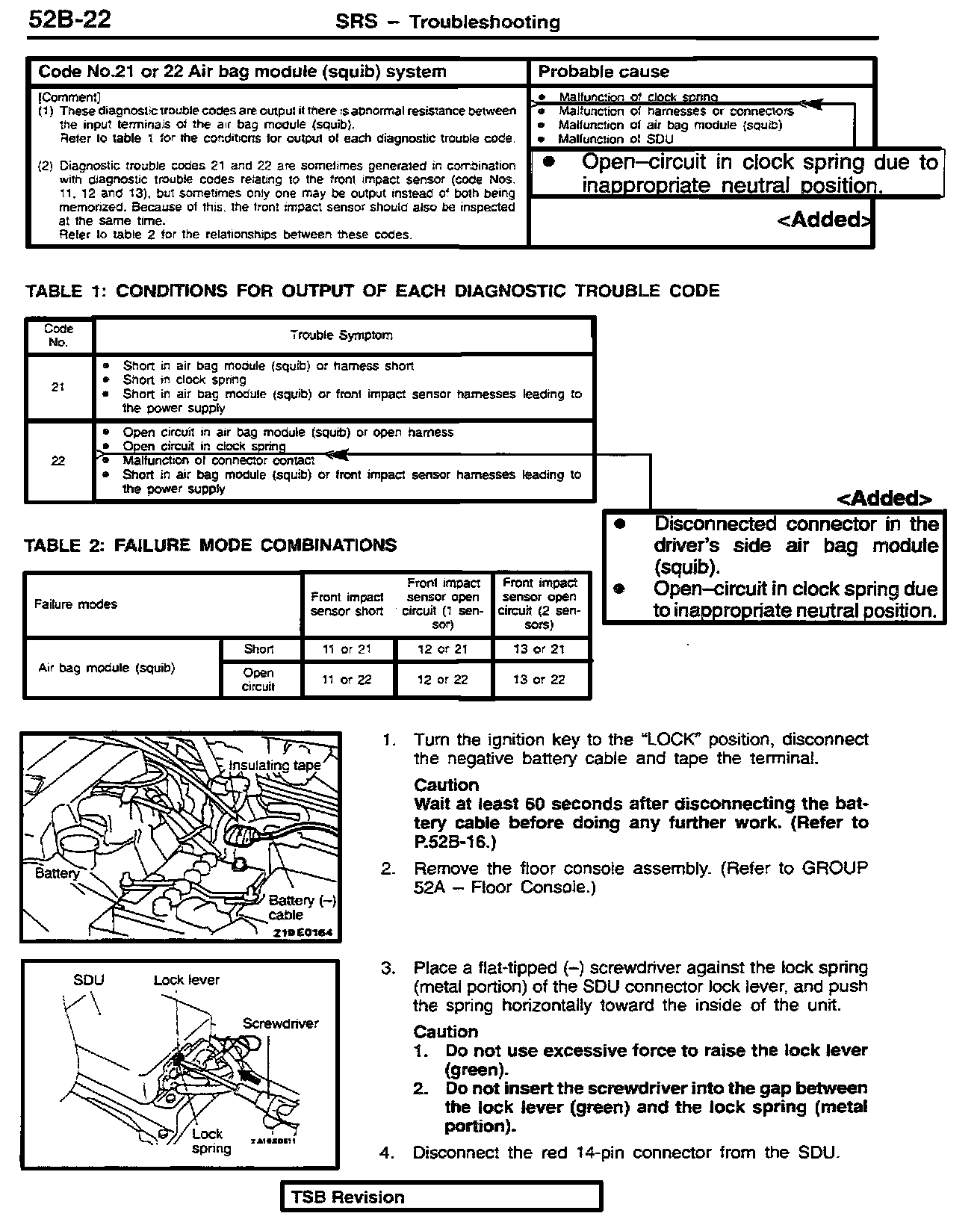 This bulletin updates information in the affected service manuals and also contains new additional SRS air bag troubleshooting and inspection procedures.