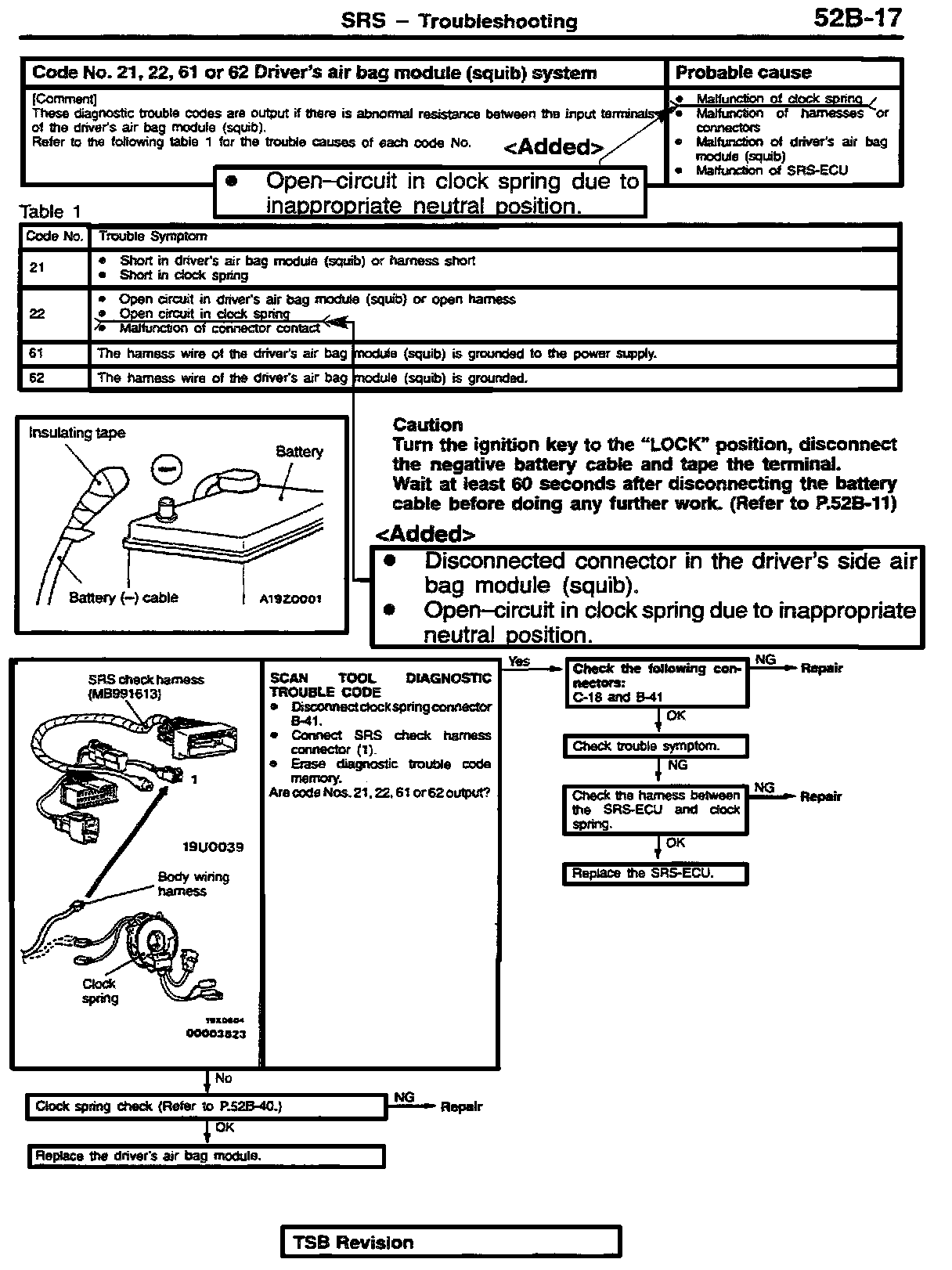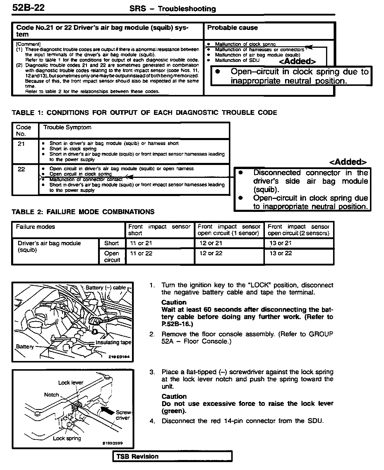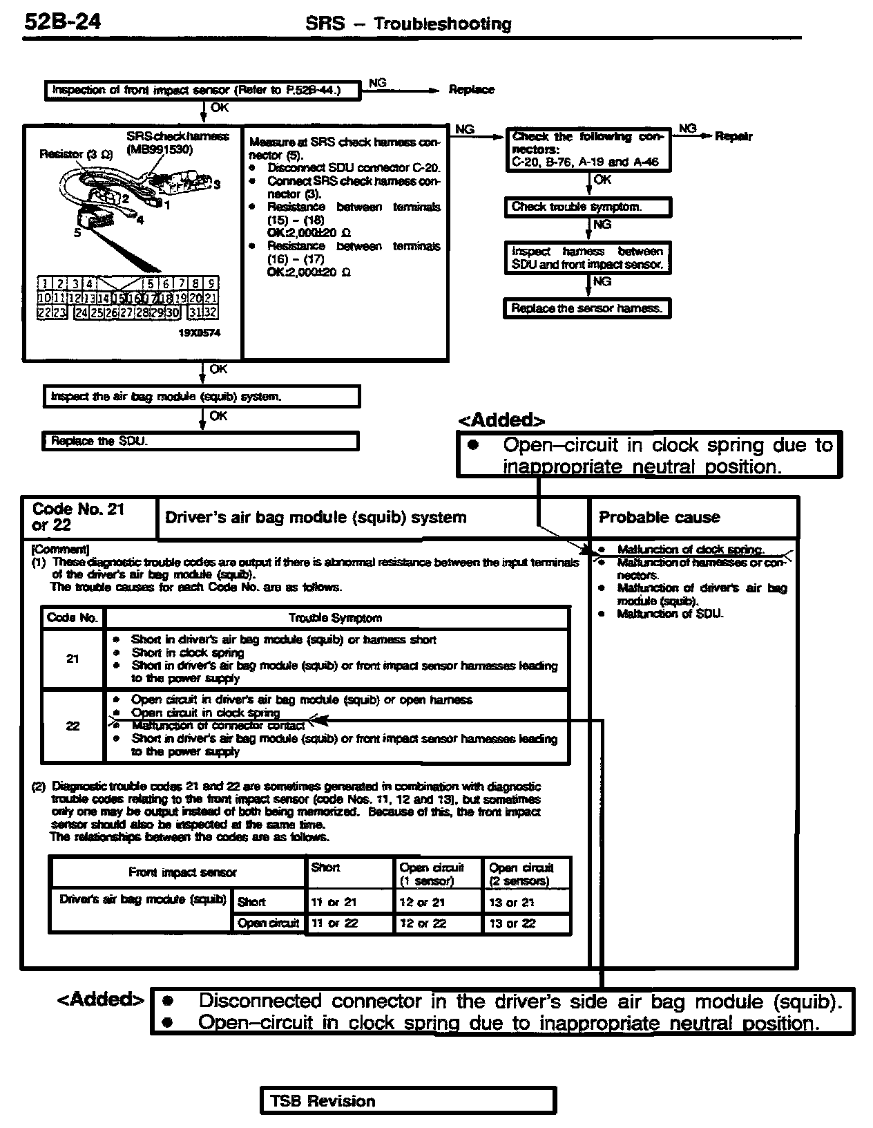 This bulletin updates information in the affected service manuals and also contains new additional SRS air bag troubleshooting and inspection procedures.