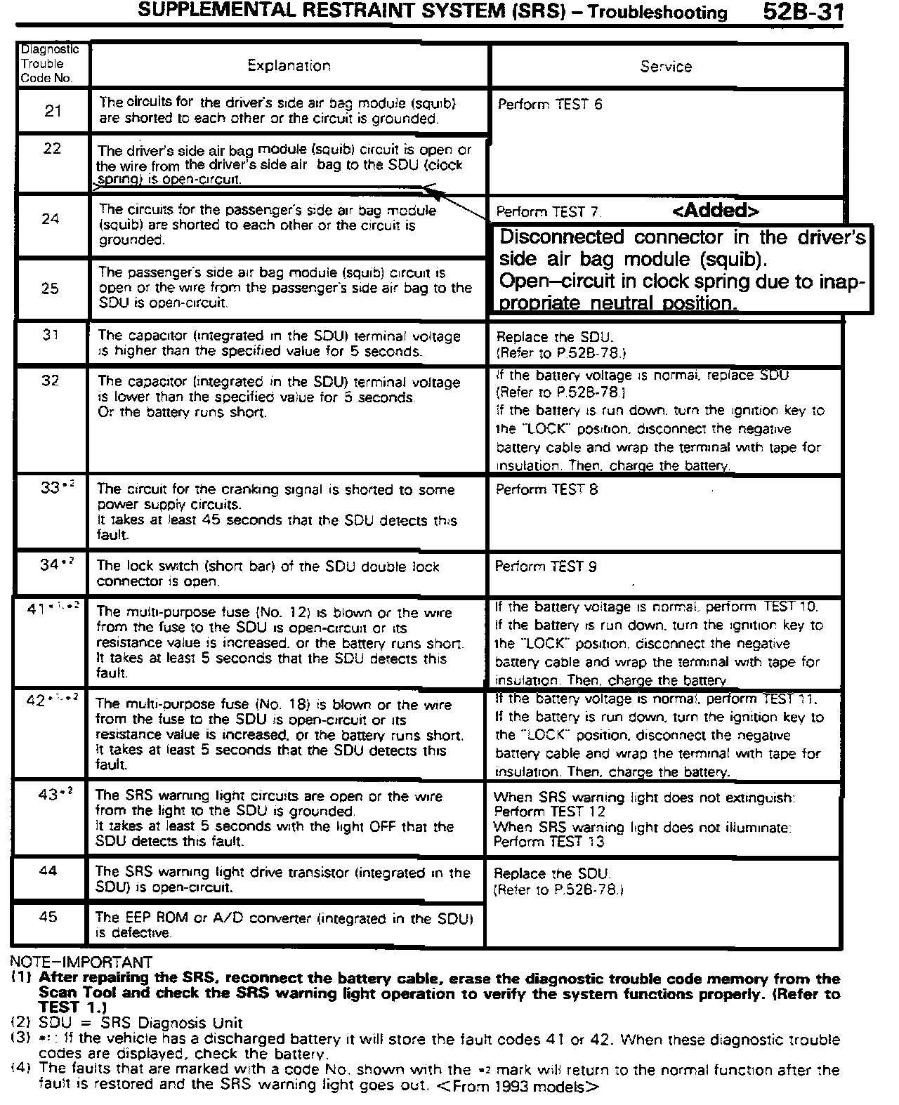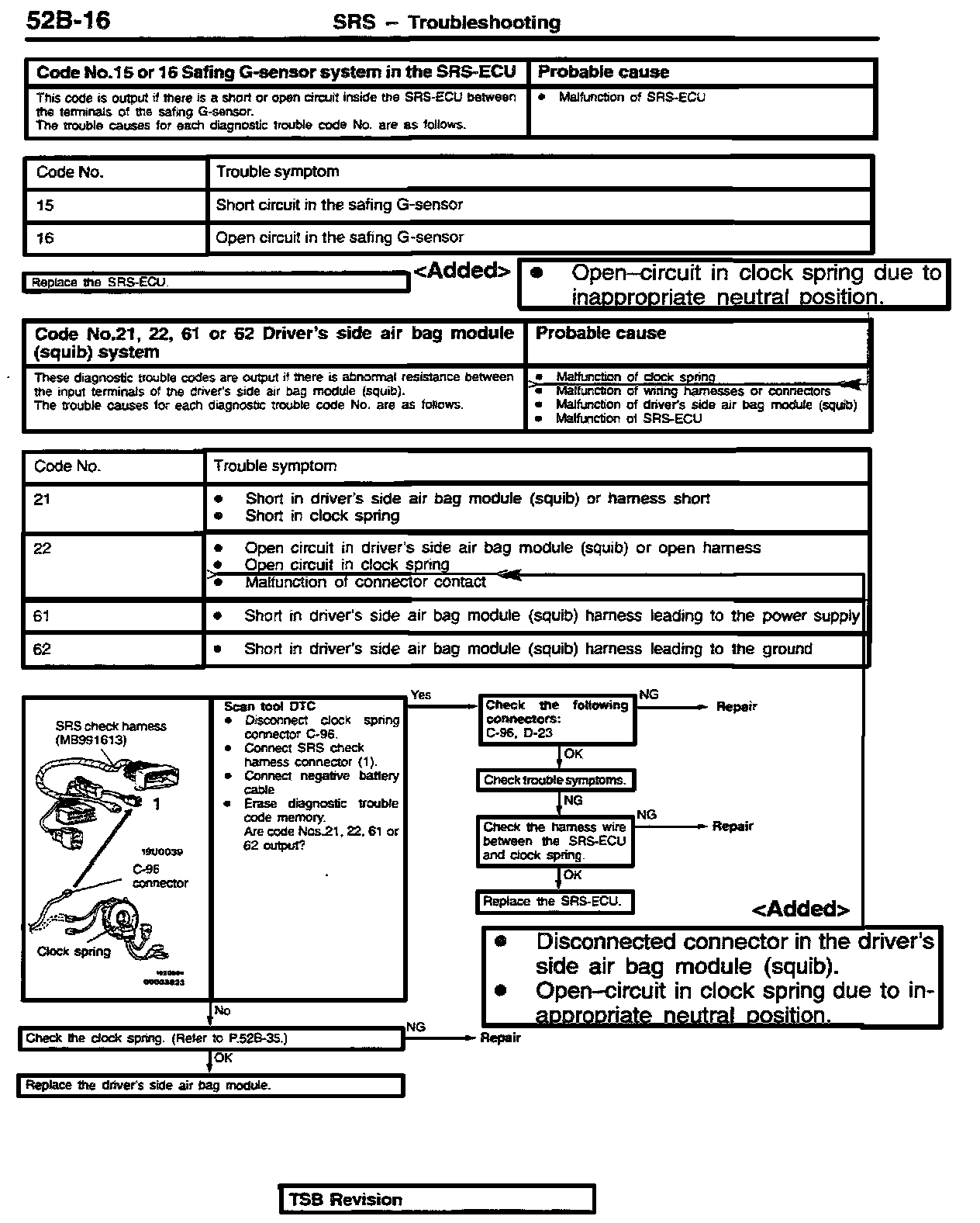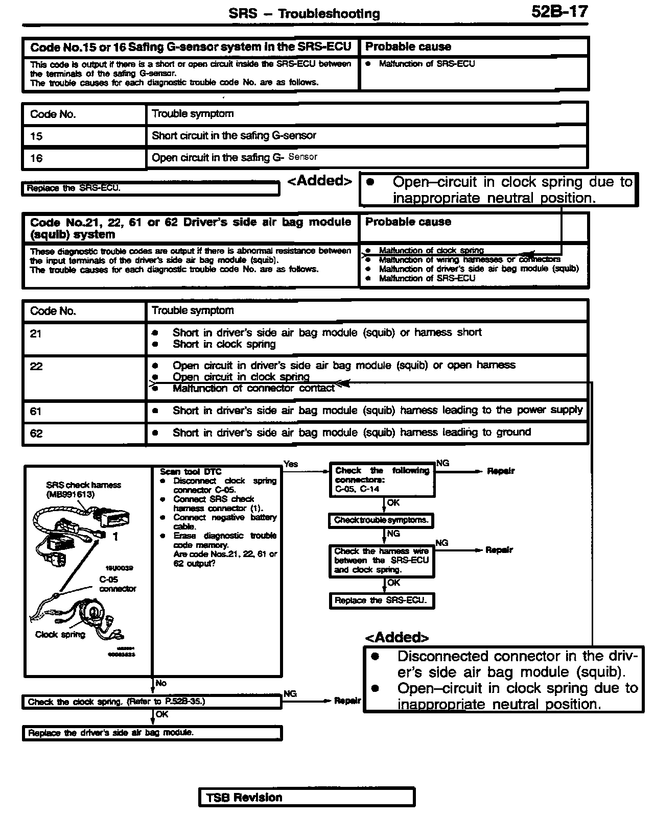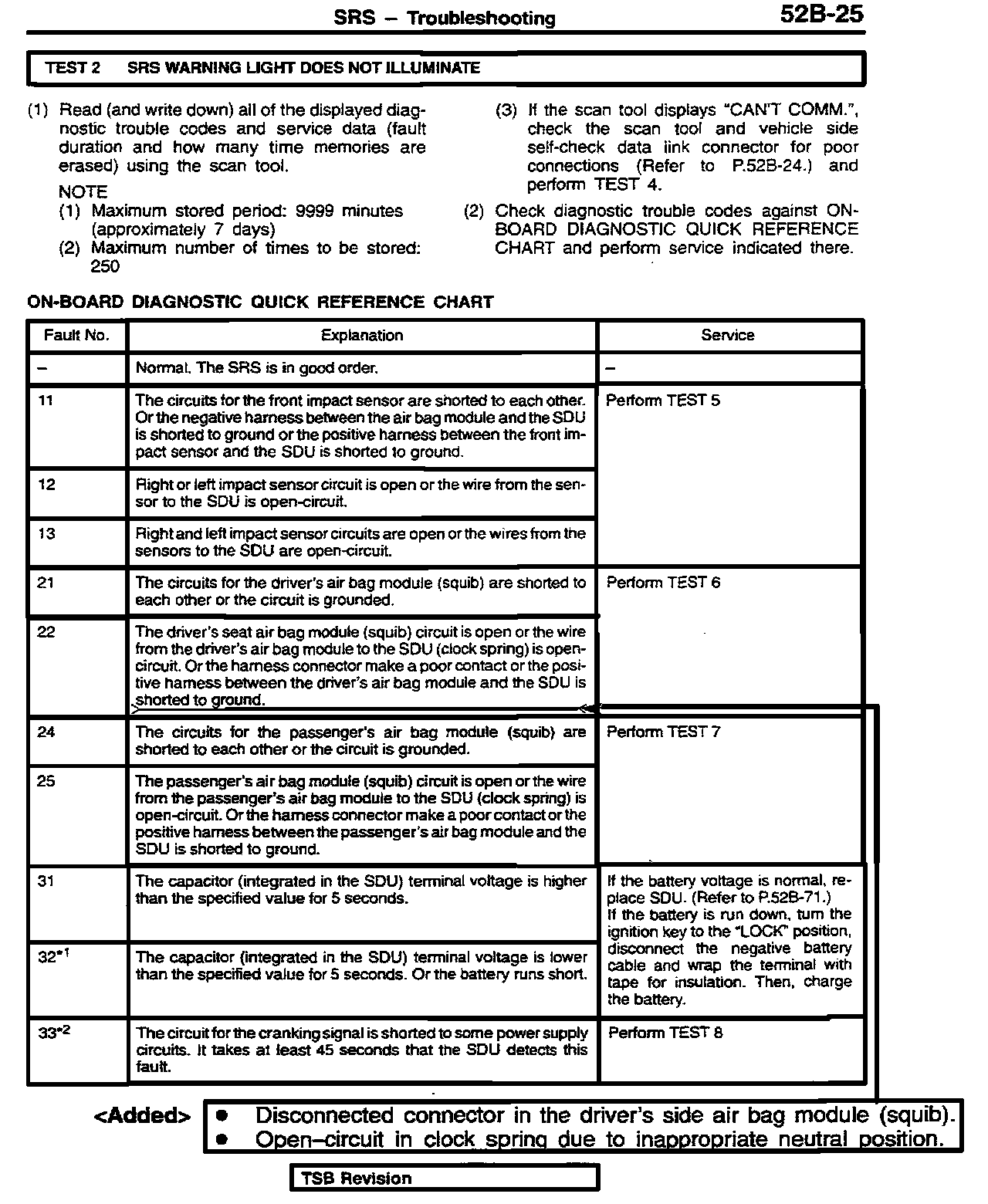 This bulletin updates information in the affected service manuals and also contains new additional SRS air bag troubleshooting and inspection procedures.