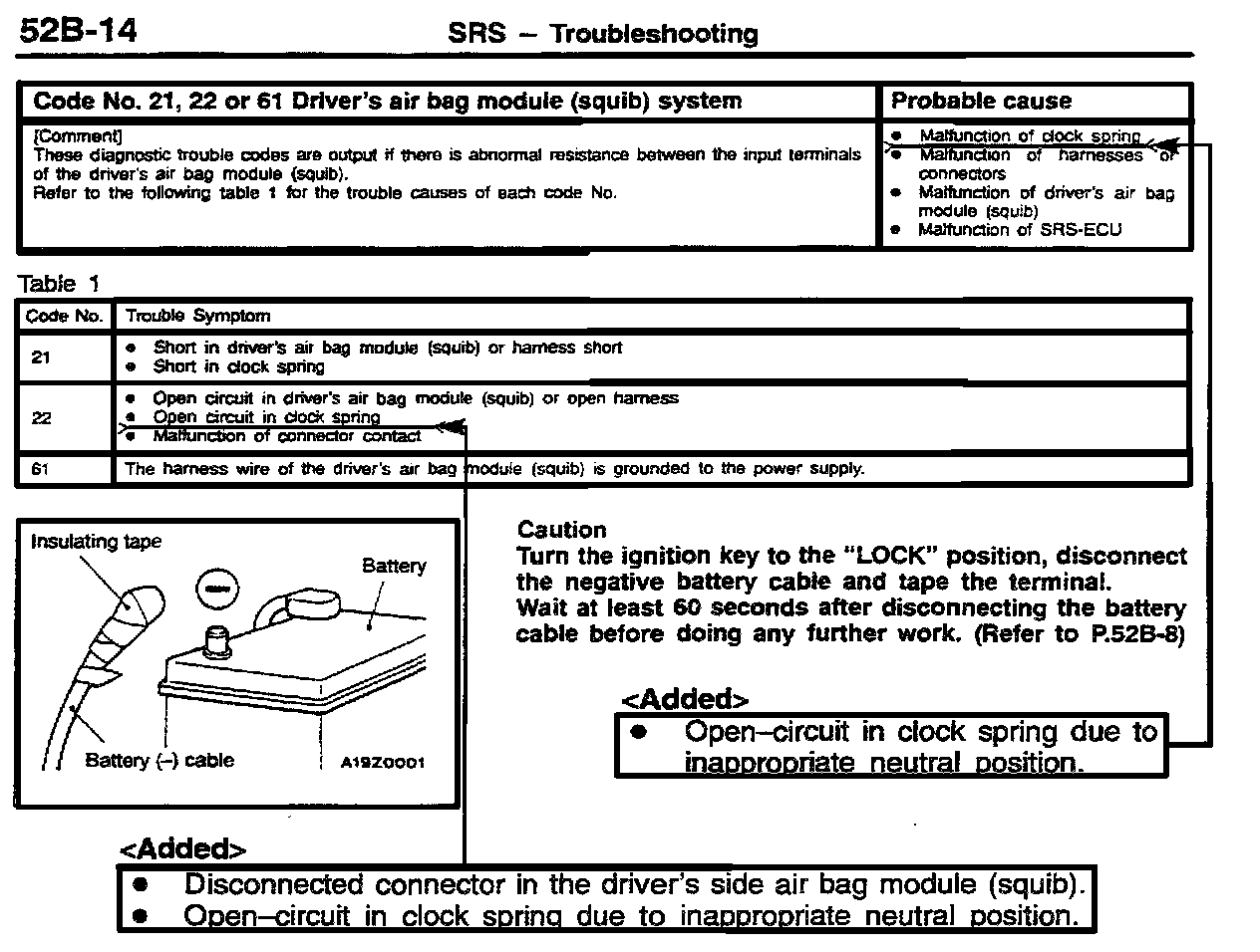 ADDITIONAL SRS AIR BAG TROUBLESHOOTING