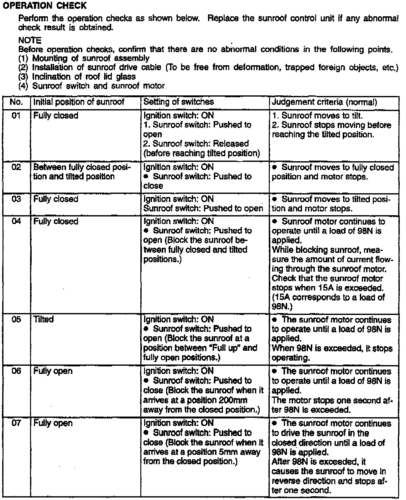 SUNROOF SERVICE PROCEDURES