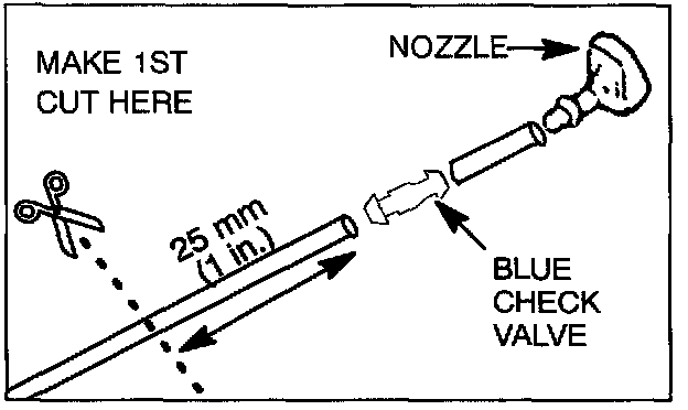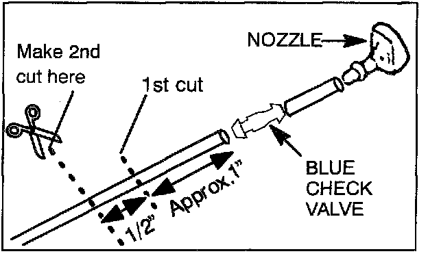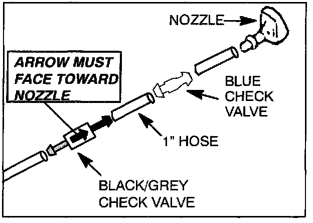 d. Install the new black and gray check valve with the arrow on the valve pointed toward the nozzle.
