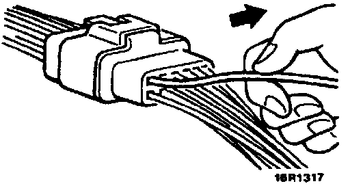 When the terminal stopper of connector is out of order, engagement of male and female terminals becomes improper even when the connector itself is engaged perfectly and the terminal sometimes slips out to the rear side of connector. Ascertain, therefore, that each terminal does not come off the connector by pulling each harness wire.