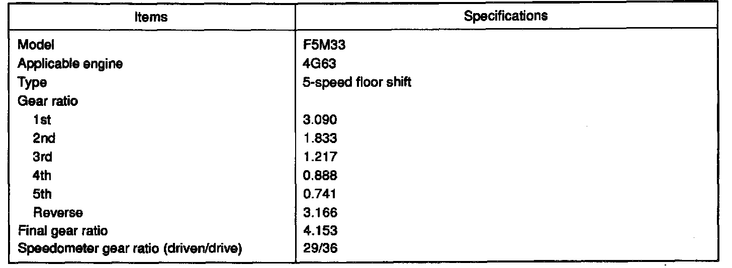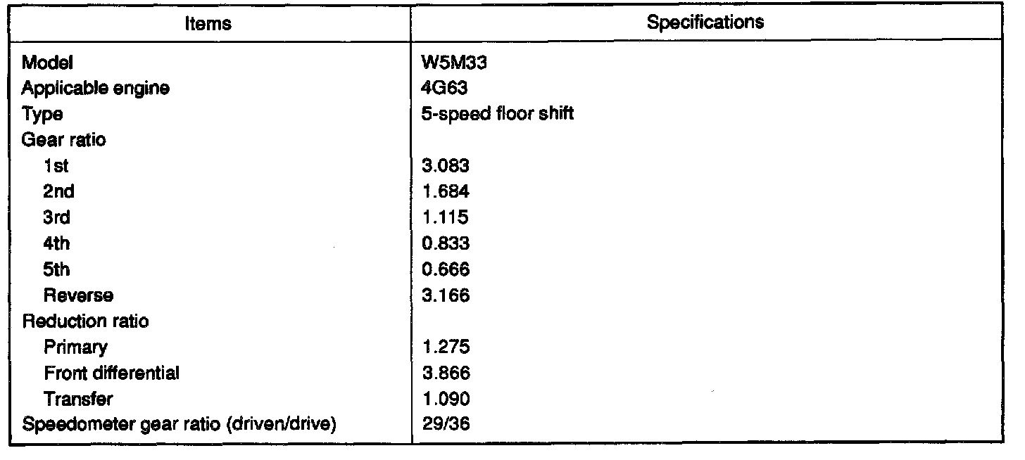 The manual transaxles come in two models, namely, F5M33 and W5M33. These transaxles are essentially the same as the conventional models.
