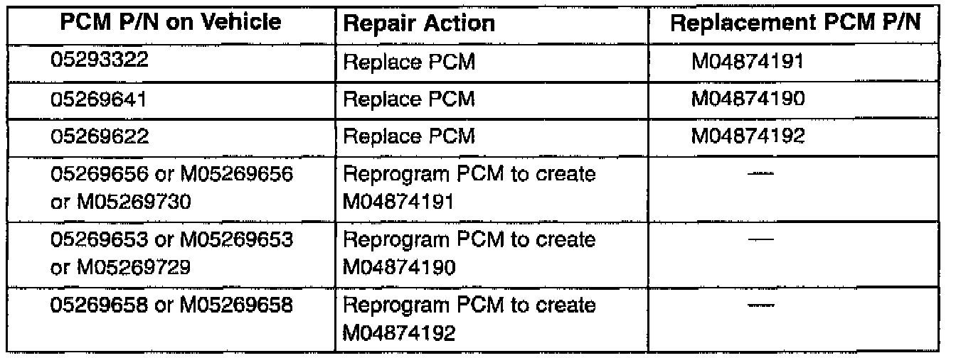 ^ On models produced before 6/19/94, if any of the following PCM part numbers (OEM number or Control Module Label number) are installed on the vehicle, it cannot be reprogrammed for this Technical Service Bulletin condition. Replace the PCM. Refer to the chart for the appropriate replacement PCM.