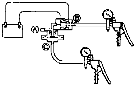 5. Connect a positive pressure-type hand pump to nipple (C).
