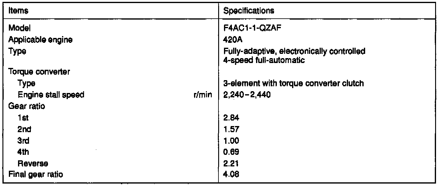 The automatic transaxle comes in one model, the F4AC1.