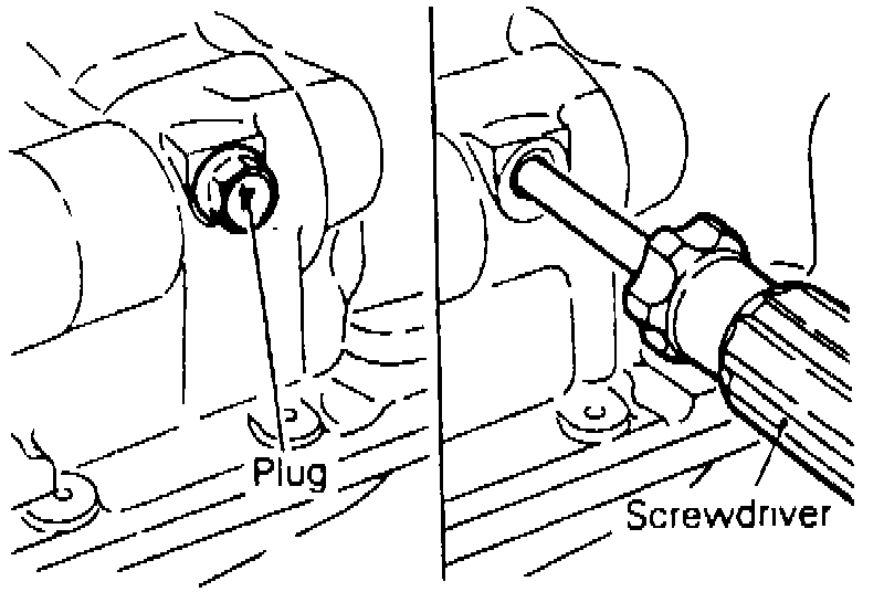 1. Remove timing belt as described in Timing Belt.Fig. 28 Silent Shaft Blocking Plug: