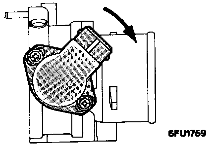 4 Loosen the throttle position sensor mounting bolt; then turn the throttle position sensor body fully clockwise.