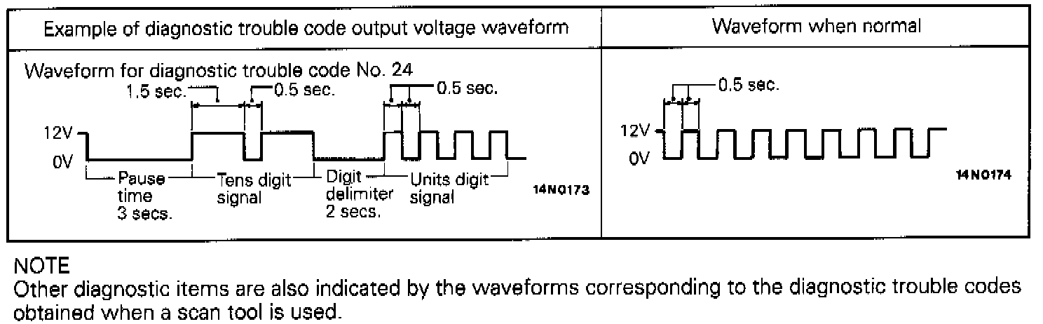 CAUTION: When connecting the voltmeter to the ground terminal (No. 4 or 5 terminal), use the special tool (diagnostic trouble code check harness).