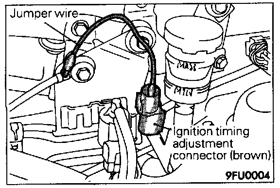 11. Disconnect the jumper wire from the ignition timing adjustment terminal and return the connector to its original condition.