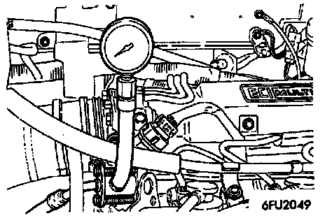11. Check to see that fuel pressure at idle does not drop even after the engine has been raced several times.