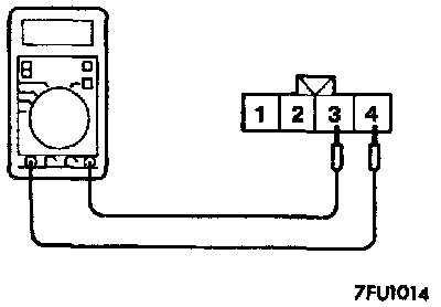 2. Make sure that there is continuity [approx. 12 Ohms at 20°C (68°F)] between terminal 3 and terminal 4 on the heated oxygen sensor connector.