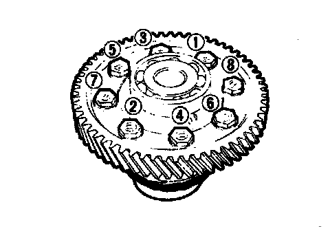 (1) Apply automatic transmission fluid to the bolts and tighten the bolts to the specified torque in the sequence shown in the illustration.