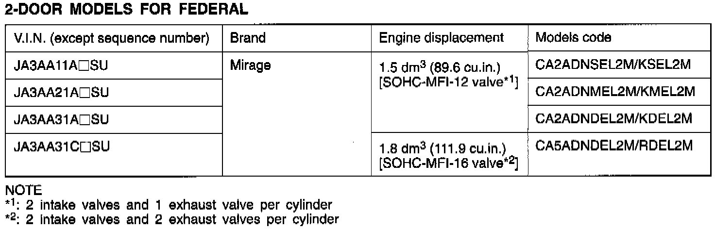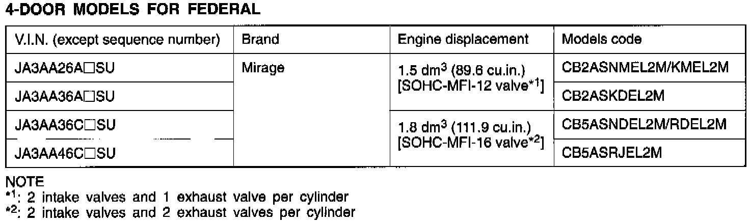 Mirage L4-1468cc 1.5L SOHC 12 Valve