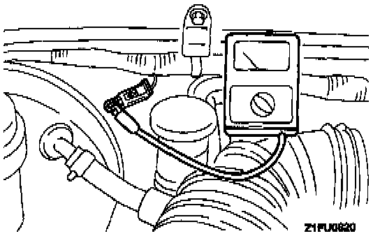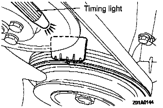 NOTE: Do not use the scan tool. If tested with the scan tool connected to the data link connector, the ignition timing will not be the basic timing but be ordinary timing.