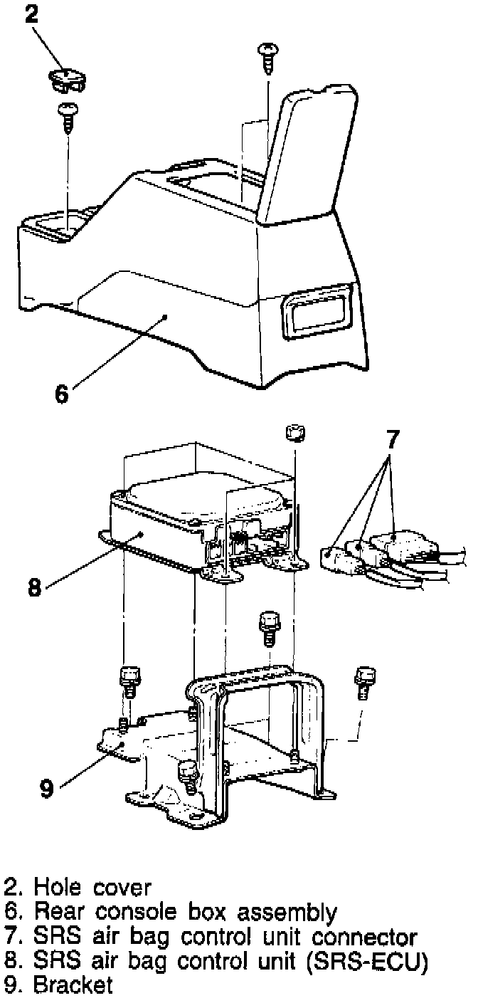 2. Do not drop or subject the SRS-ECU to impact or vibration. If dents, cracking, deformation, or rust are discovered on the SRS-ECU, replace it with a new SRS-ECU. Discard the old one.