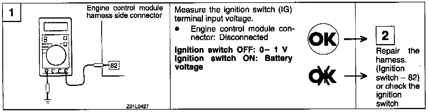 Caution: When applying battery voltage directly, make sure that it is applied to correct terminal. Otherwise, the relay could be damaged.