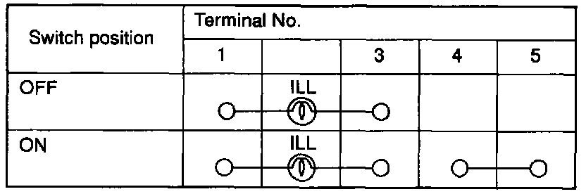 Fog Light Switch Continuity Check Table: