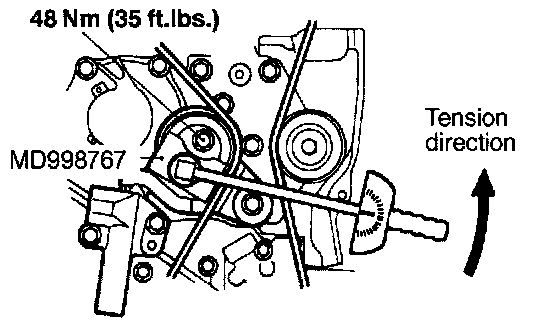 Standard value: 3.5 N.m (2.6 ft-lb) [Timing belt tension torque]