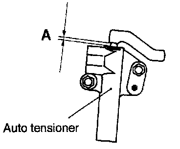 3. Turn the crankshaft two revolutions clockwise so that the timing marks are aligned. After leaving it for 15 minutes, measure the amount of protrusion of the auto tensioner.