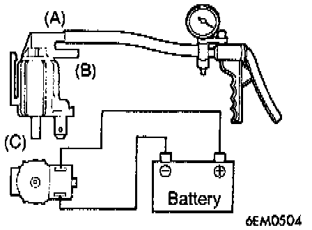 4. Check air tightness by applying a vacuum with Voltage applied directly from the battery to the EGR control solenoid valve and without applying Voltage.