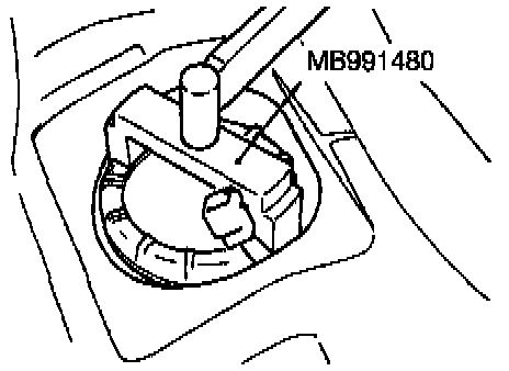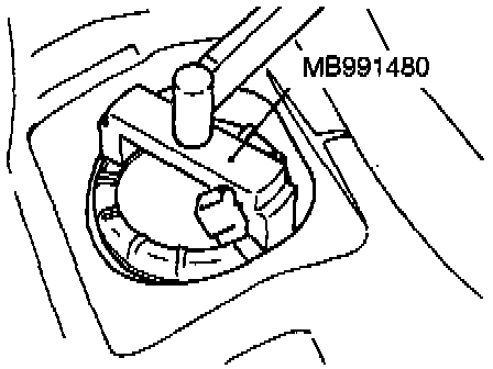 (7) After applying soapy water to the outside thread of the fuel tank, install the cap and use the special tool to tighten it to the specified torque.