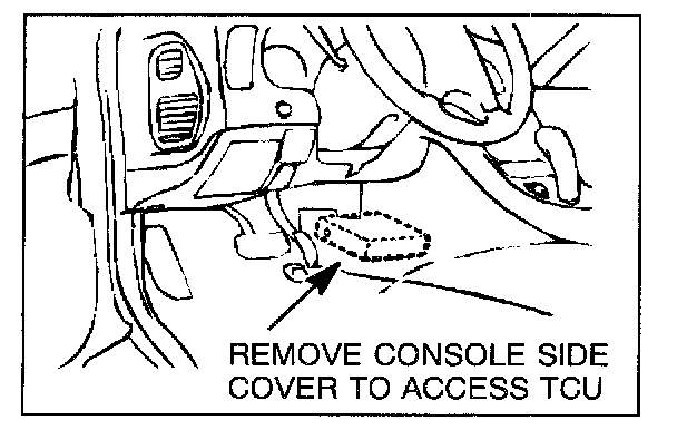 12. Remove the center console side cover to access the TCU. Affix the Control Module Label to the side of the TCU. Then reinstall the console side cover.