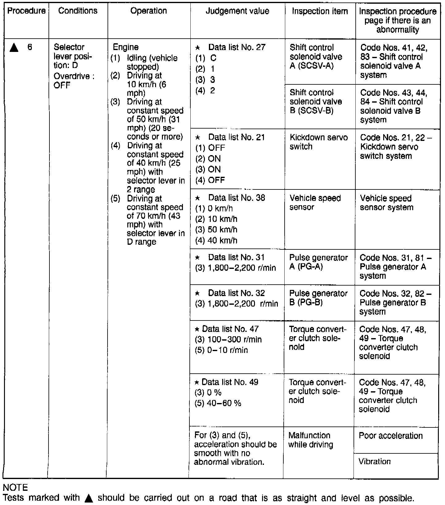 Road Test Procedures