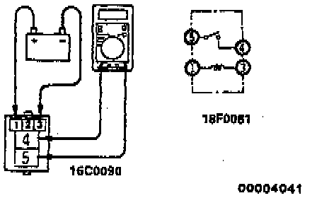 1. With battery (positive) power supplied to the No. 1 terminal and the negative cable on terminal No. 3, there should be continuity across terminals 4 and 5.
