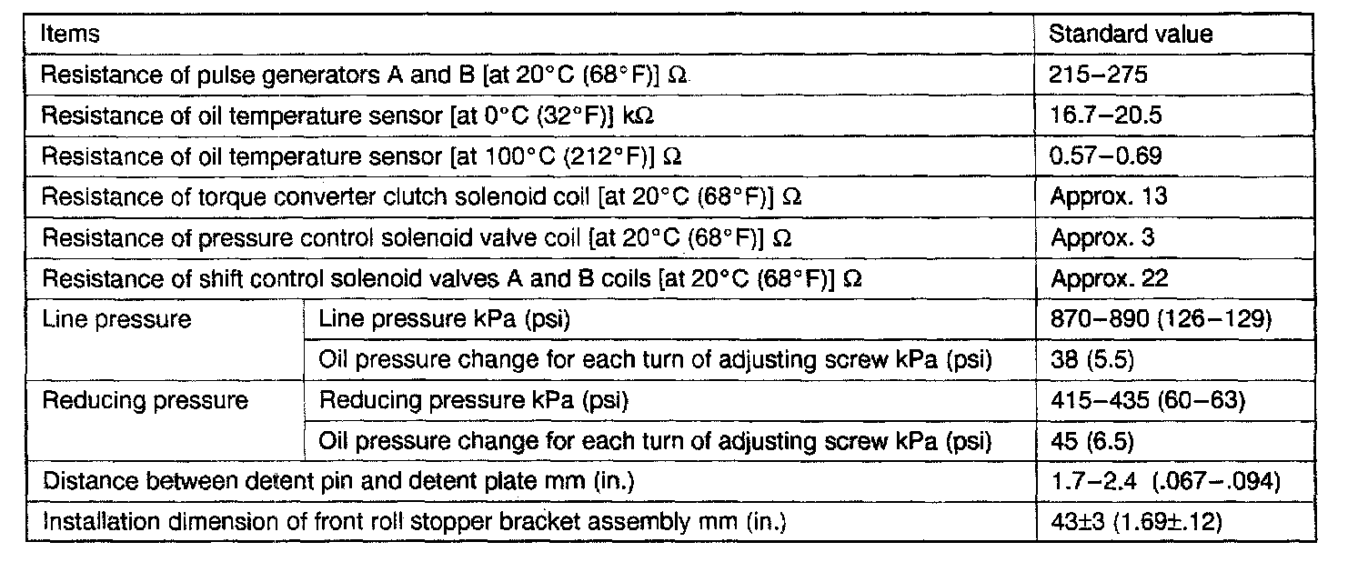 F4A23/F4A33 4-spd A/T, Standard Values: