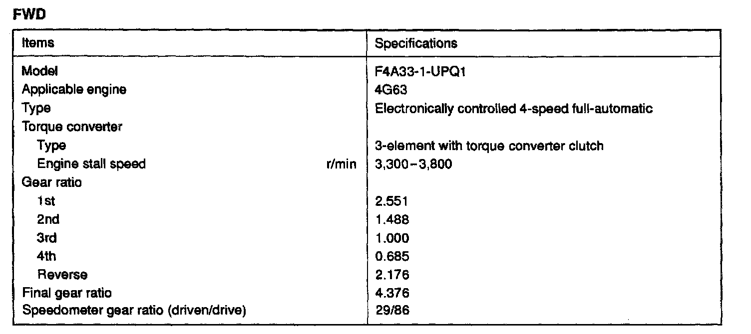F4A33 4-spd M/T, Gear Ratios ('95):