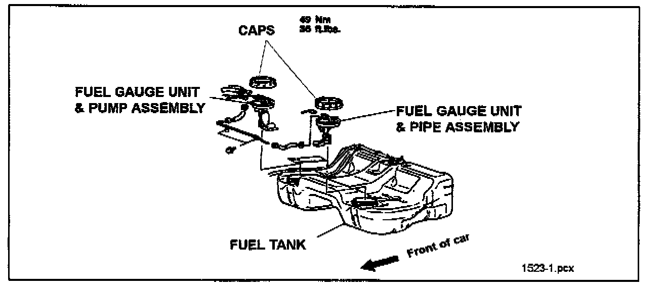 Installation of the fuel gauge unit & pump assembly and the fuel gauge unit & pipe assembly requires great care to prevent the units from being misaligned. Misalignment will cause the float arm to contact the cup reservoir or other interior surface of the tank, hampering its movement and resulting in inaccurate fuel gauge reading or improper operation of the low fuel warning light.