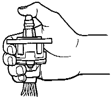 5. With the idle air control motor as shown in the illustration, connect the negative (-) terminal of the power supply to each clip as described in the following steps, and check whether or not a vibrating feeling (a feeling of very slight vibration of the stepper motor) is generated as a result of the activation of the stepper motor.