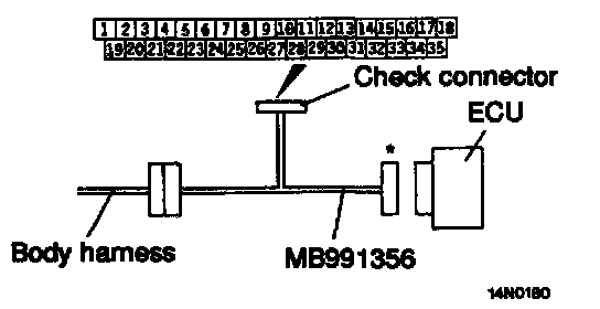 CAUTION: Set the special tool and use the check connector to inspect. Do not connect the connector (Special Tool) as marked except when recording the waveform on a driving test. In such a case, connect the connector to the ECU.