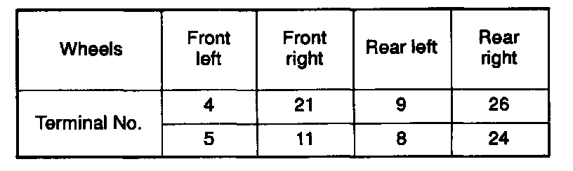 WHEEL SPEED SENSOR OUTPUT VOLTAGE CHECK1. Lift up the vehicle and release the parking brake.