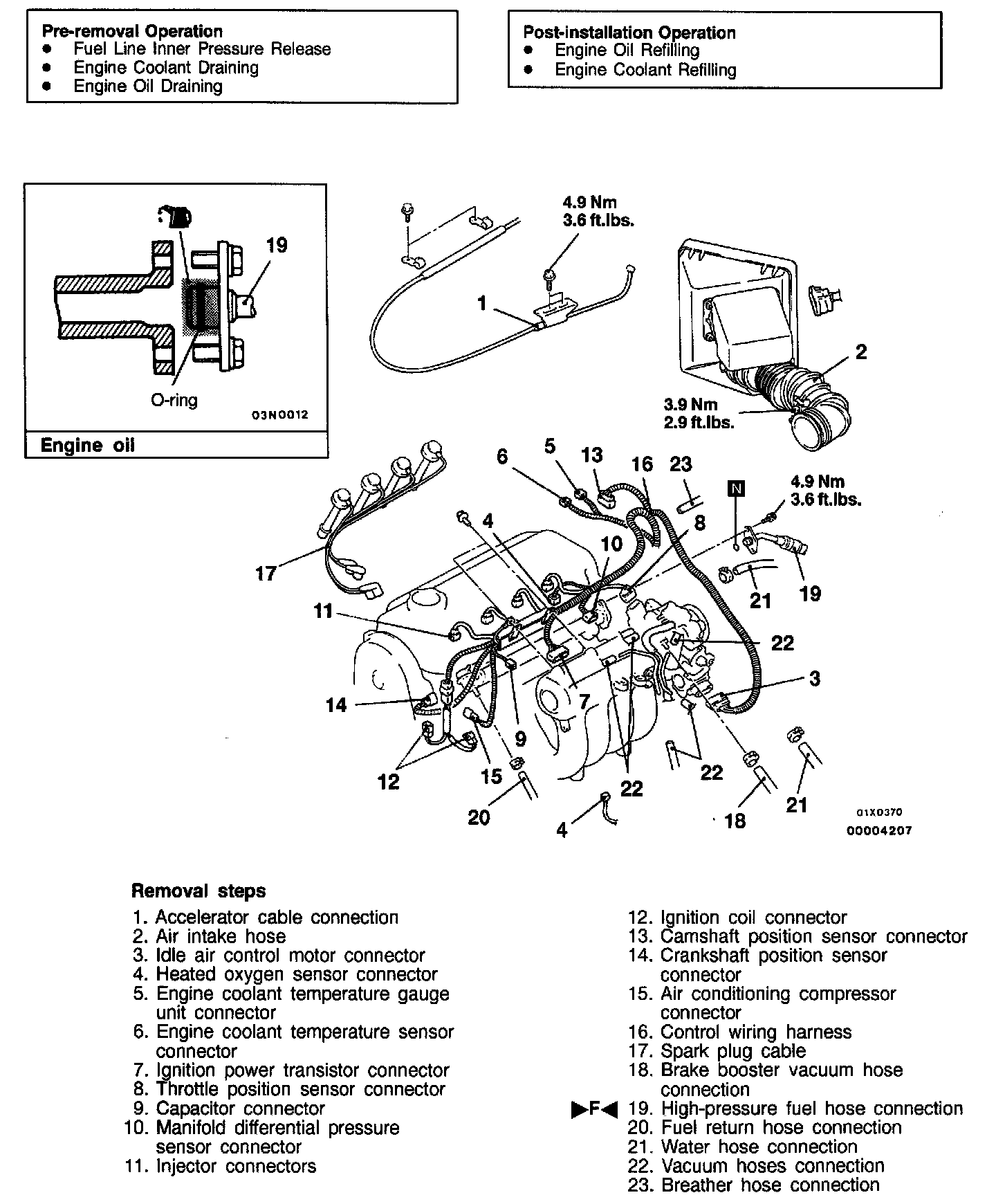 When connecting the high-pressure fuel hose to the fuel rail, apply a small amount of clean engine oil to the hose union and then insert, being careful not to damage the 0-ring.