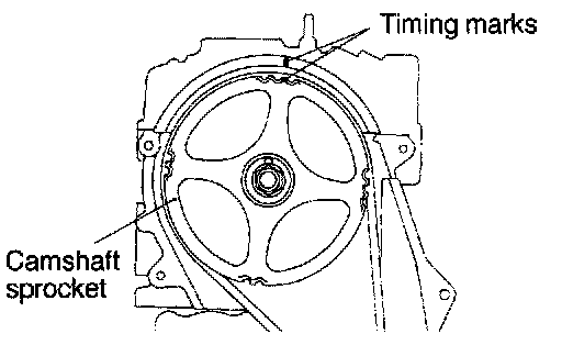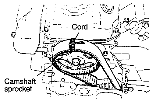 (2) Tie the camshaft sprocket and timing belt with a cord so that the position of the camshaft sprocket will not move with respect to the timing belt.