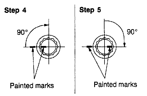 1. Always make a tightening angle just 90°. If it is less than 90°, the head bolt will be loosened.
