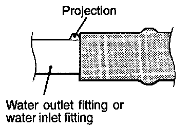 (1) Insert each hose as far as the projection of the water outlet fitting or water inlet fitting.