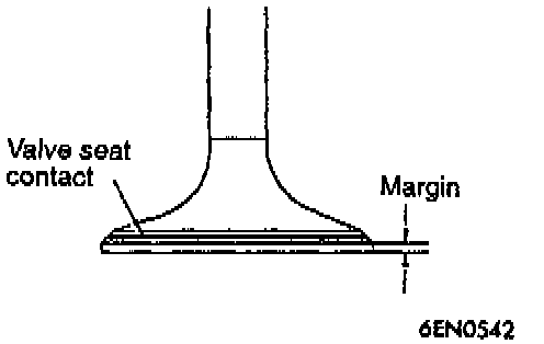 1. Check the valve face for correct contact. If incorrect, reface using valve refacer. Valve seat contact should be maintained uniform at the center of valve face.