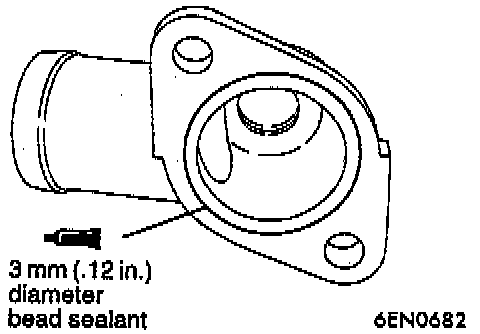 1. Before installing the thermostat housing and the water outlet, apply Mitsubishi Genuine Part No. MD970389, or equivalent sealant, to the areas shown.